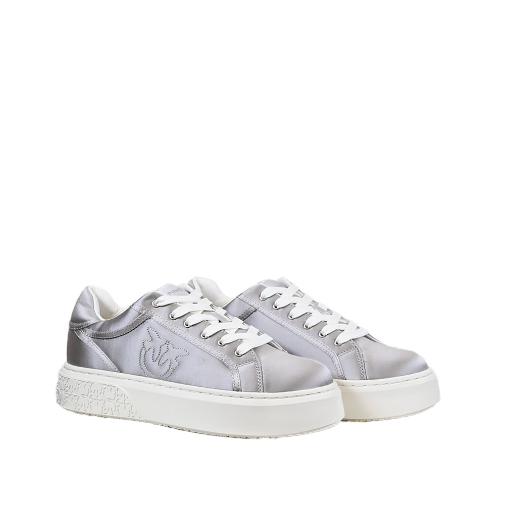 Le sneaker Yoko 01 di Pinko in pelle, con suola flatform realizzata in gomma alta 4,5 cm ed è personalizzata con dettaglio di logo uccellini intagliato nella parte posteriore. La fodera interna e la soletta delle scarpe sono entrambe realizzate in pelle. Queste sneakers da giorno sono perfette in ogni occasione, anche per aggiungere un tocco sporty al tuo tailleur più formale.