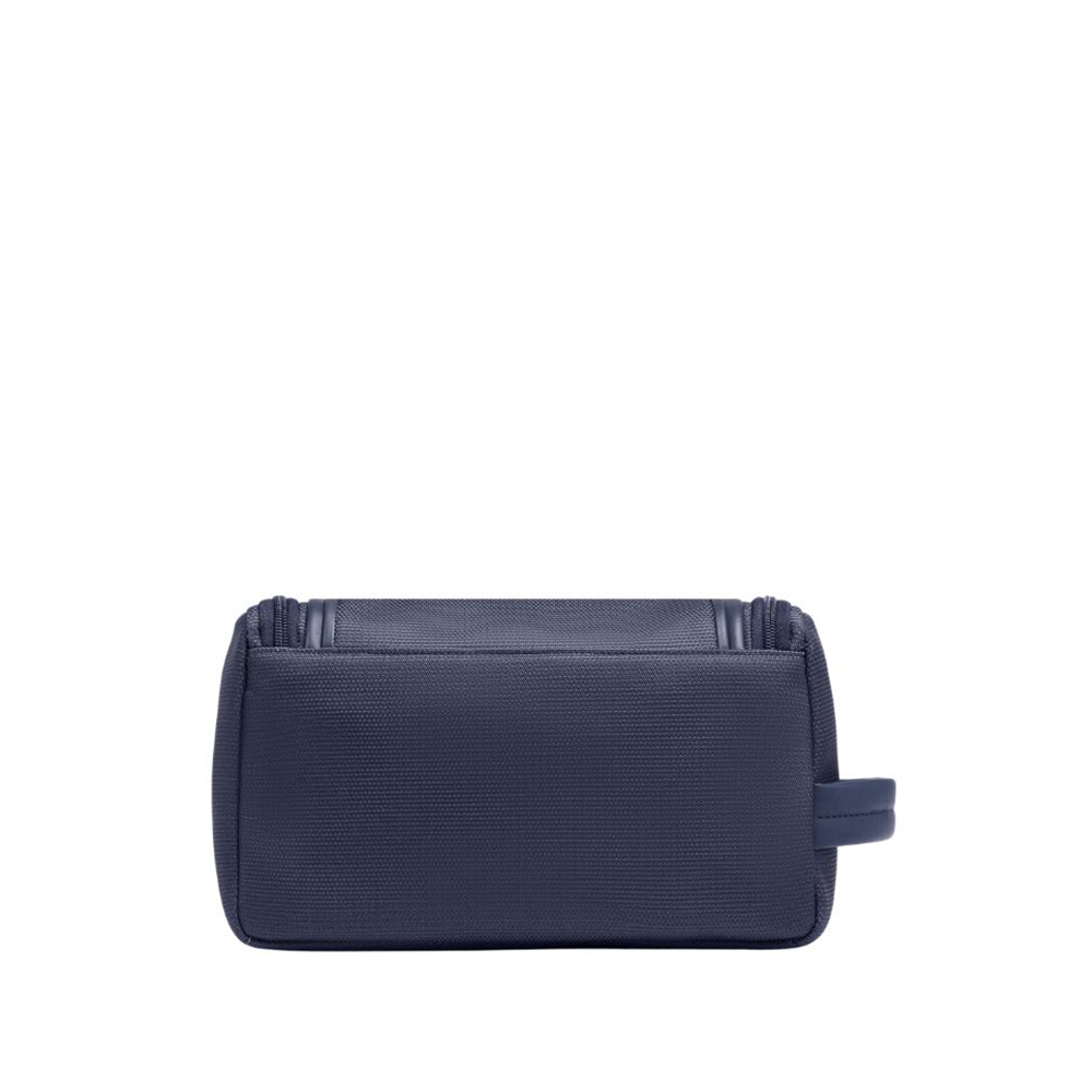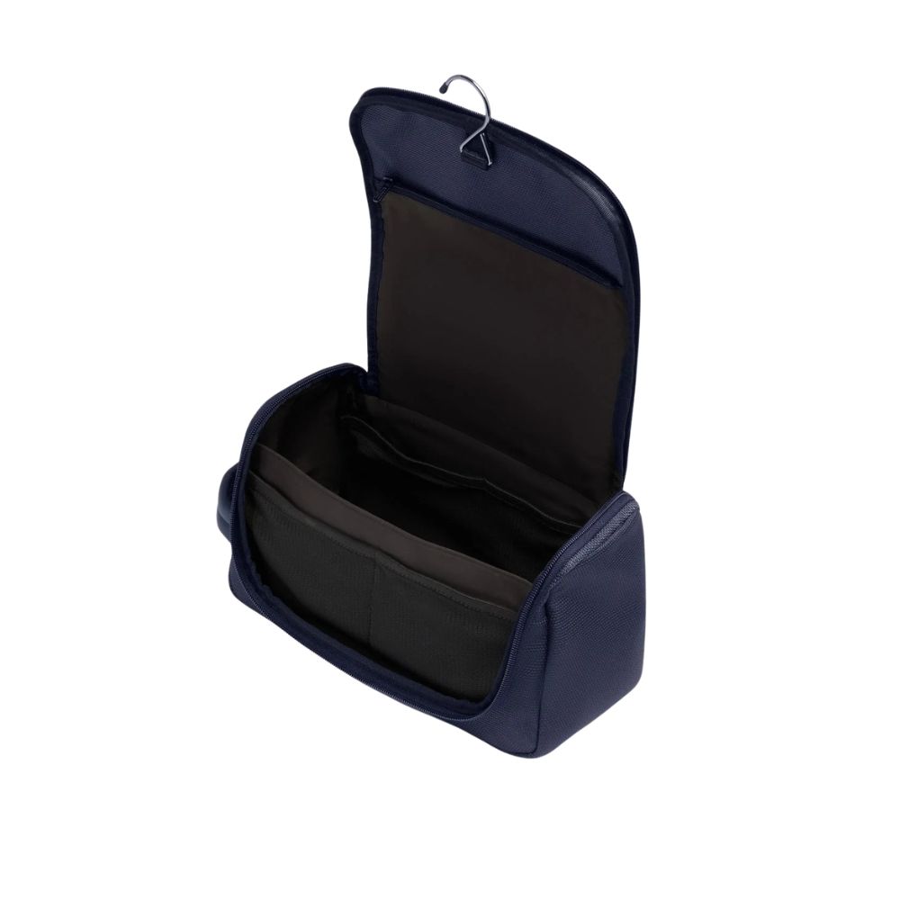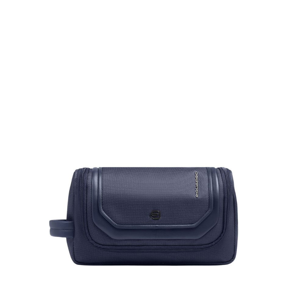 Beauty case in tessuto riciclato e pelle con gancio di Piquadro.