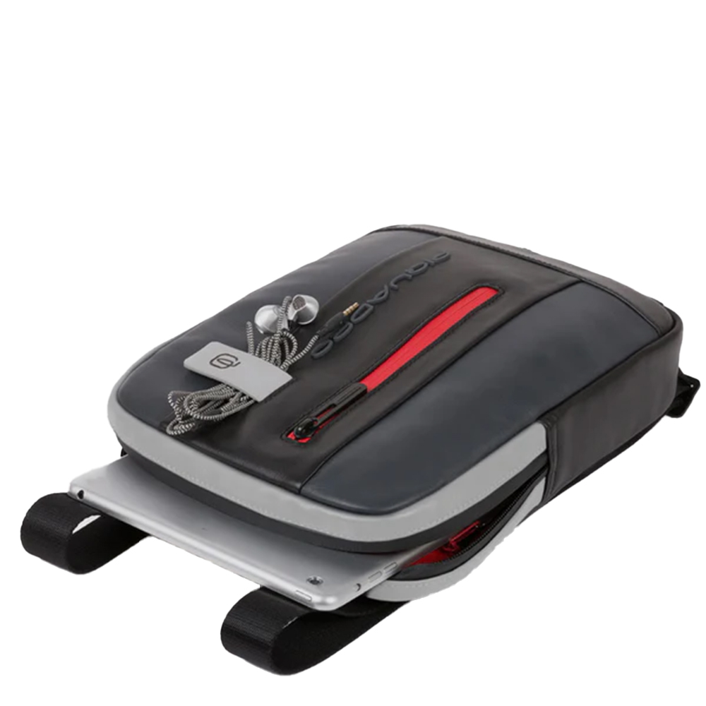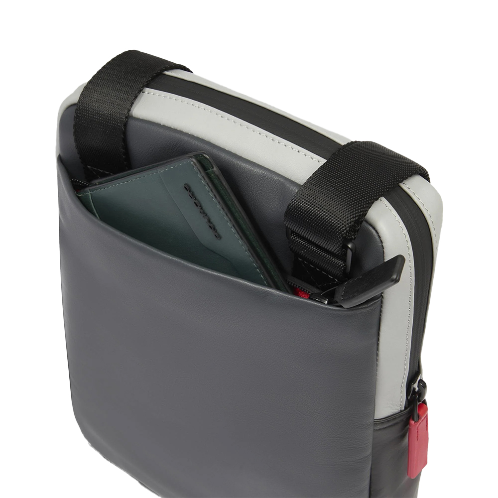 Borsello Piquadro porta Ipad, realizzato in soffice pelle naturale dall'effetto liscio, dotato di aperura con cerniera, tasca frontale con zip e tracolla regolabile.
