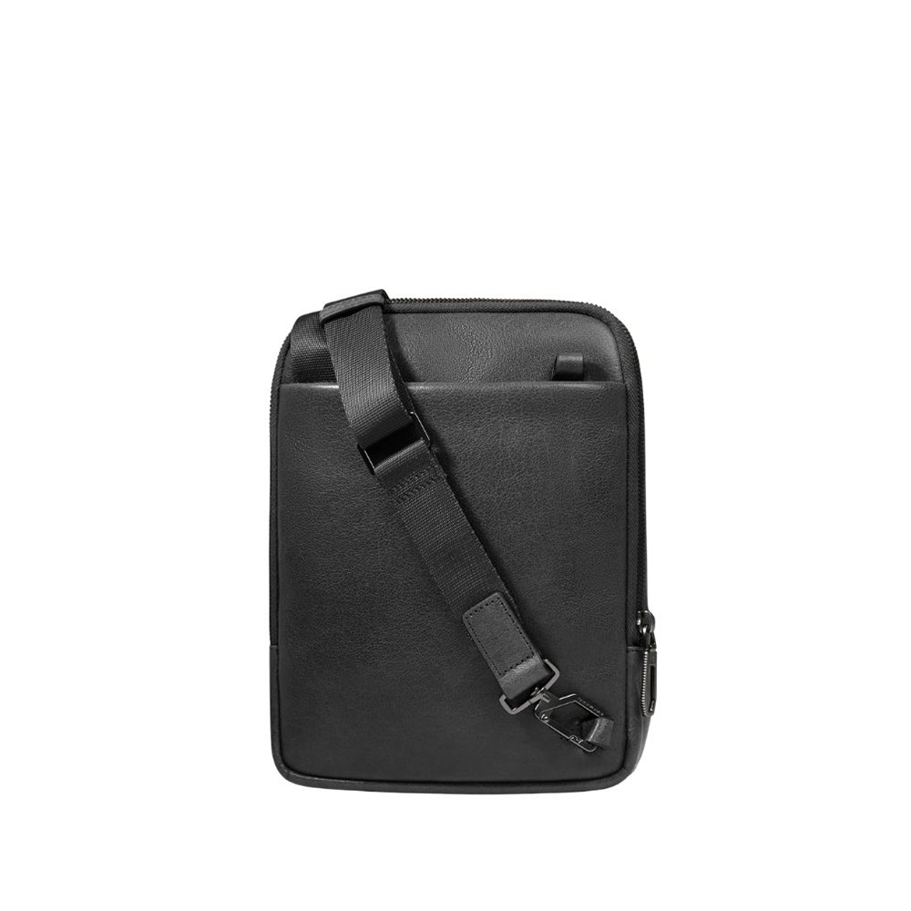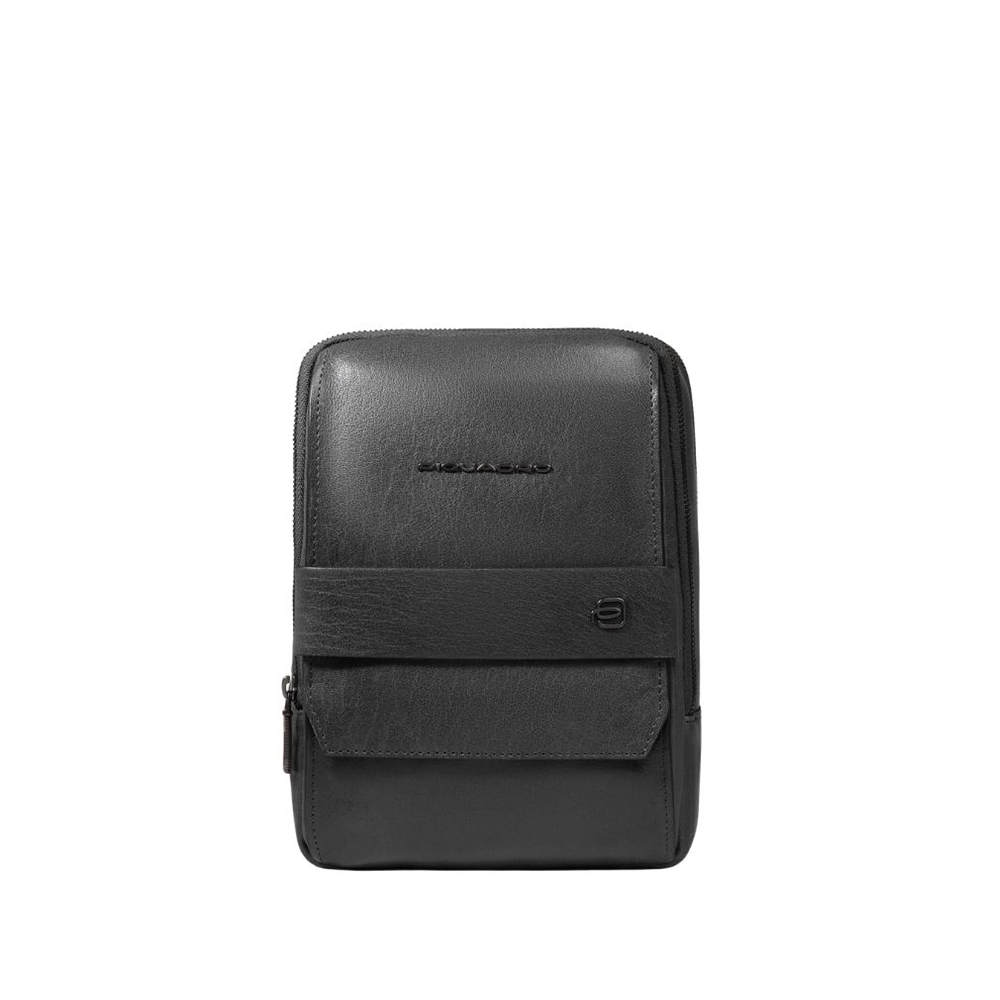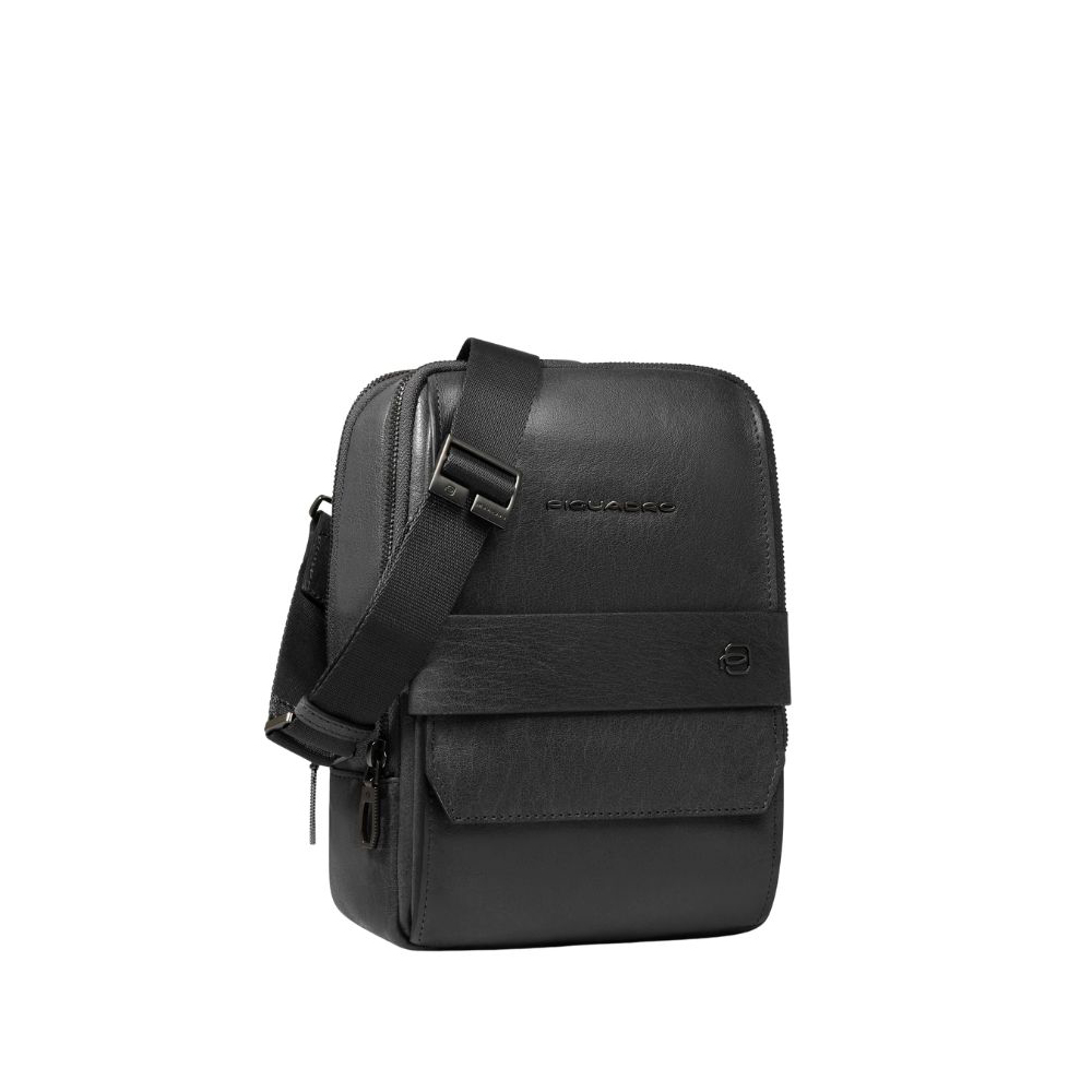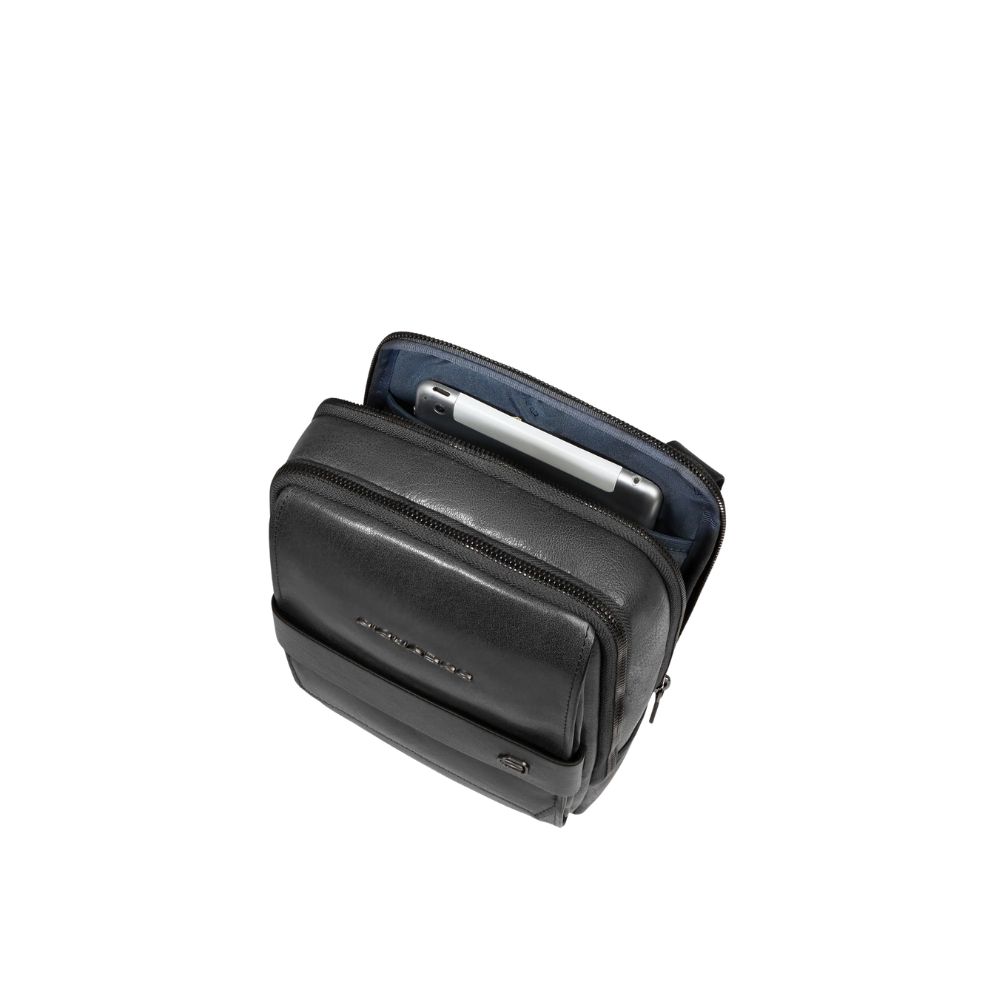 Borsello uomo in pelle di Piquadro porta iPad mini con tasca per AirPods e protezione RFID.