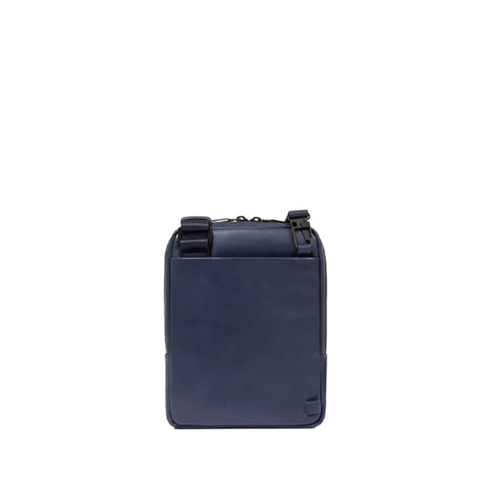 Borsello Piquadro da uomo porta iPad mini in tessuto riciclato e pelle con tasca per AirPods, con protezione anti frode RFID.