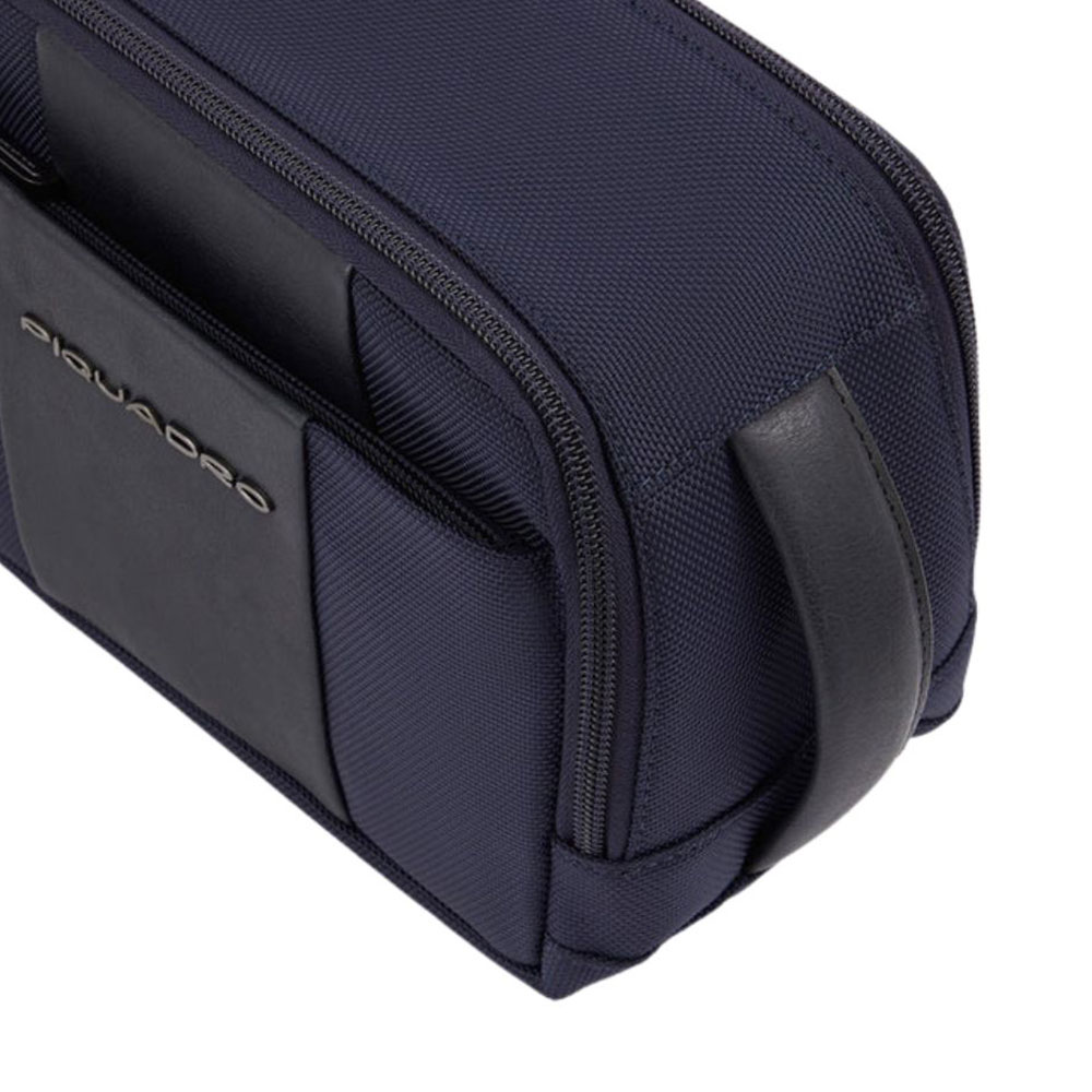 Beauty case Piquadro da viaggio in tessuto riciclato con due scomparti.