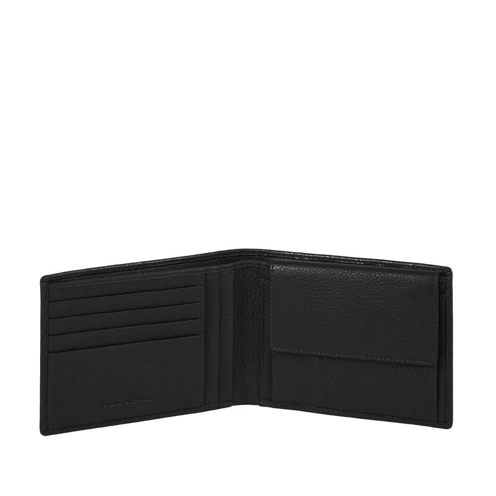 Portafoglio uomo in pelle di Piquadro con porta monete e porta carte di credito, schermato con protezione anti frode RFID.
