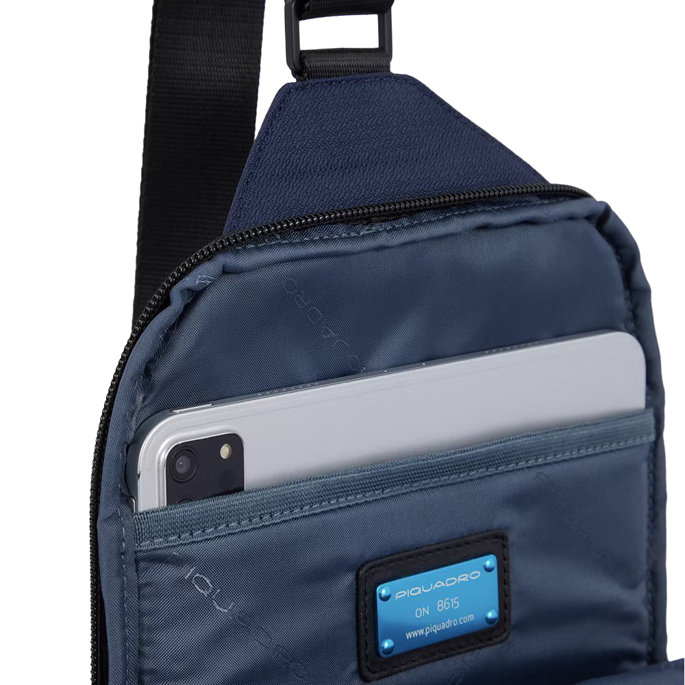 Monospalla per iPad di Piquadro con protezione anti frode RFID, tasche per AirPods.