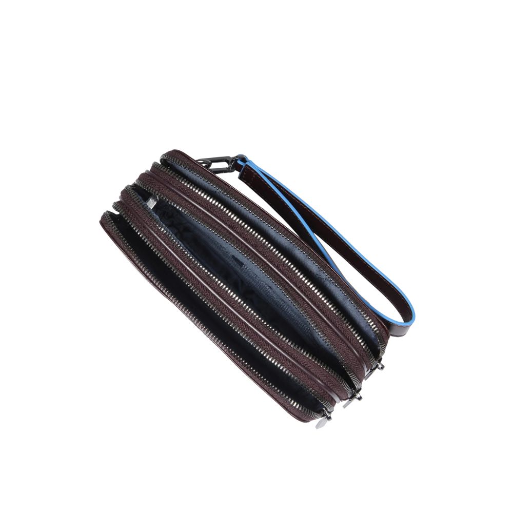 Pochette uomo in pelle di Piquadro, a tre scomparti con polsiera rimovibile e protezione RFID.