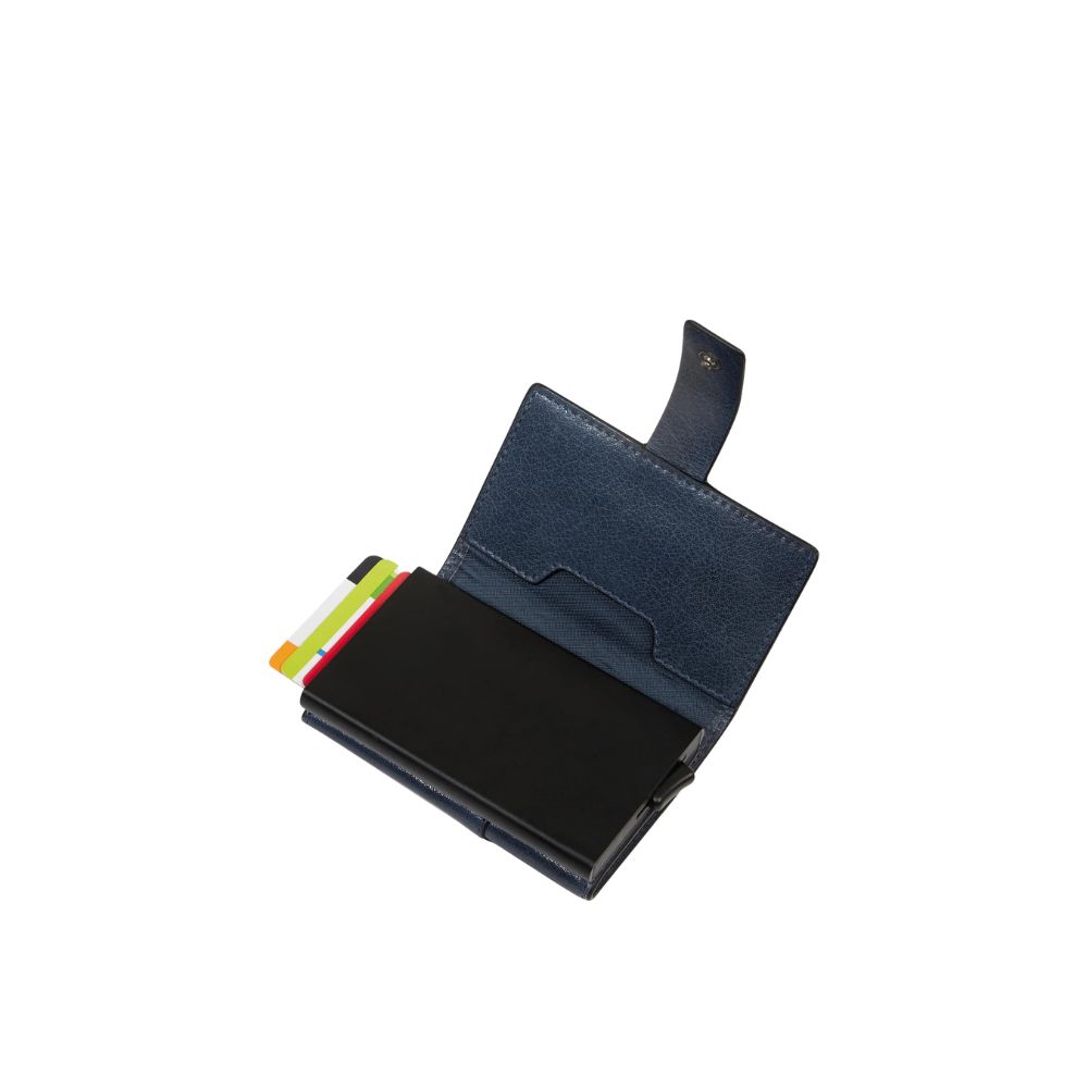 Porta carte pop-up in metallo e pelle con protezione RFID.