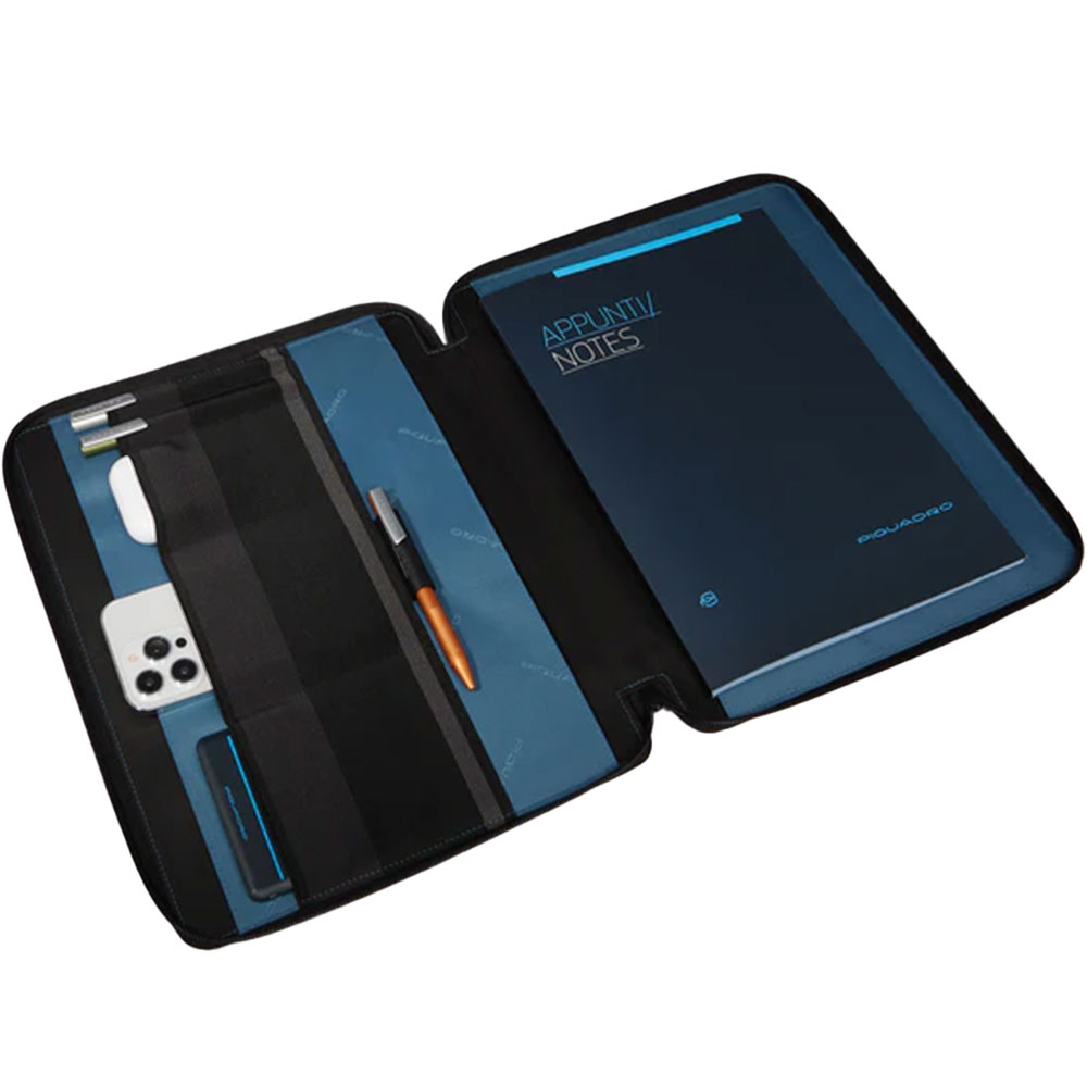 Il portablocco con scomparto per iPadPro 12,9" di Piquadro, ha il porta penne e la tasca per AirPods.