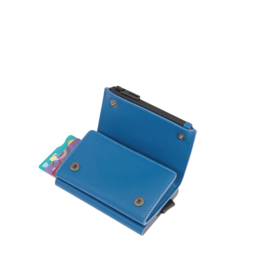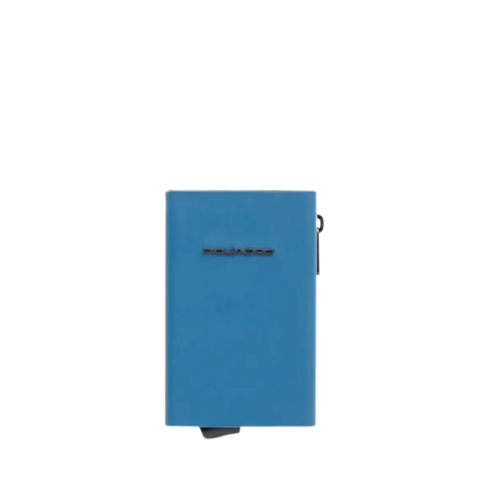 Portacarte di Piquadro compatto in tessuto gommato e resistente all'acqua con porta carte pop-up, tasca porta soldi con cerniera e protezione RFID.