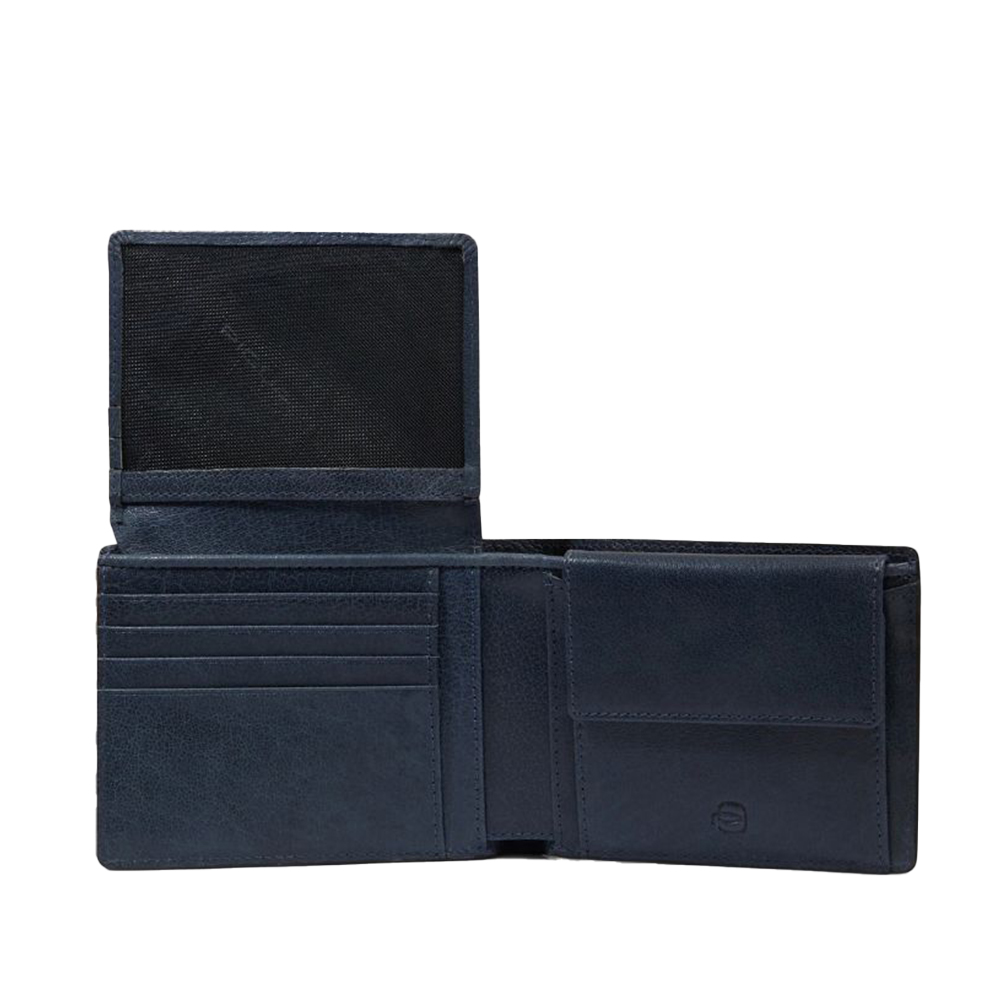 Portafogli uomo in pelle di Piquadro con porta documenti, portamonete e porta carte di credito, schermato con protezione RFID.