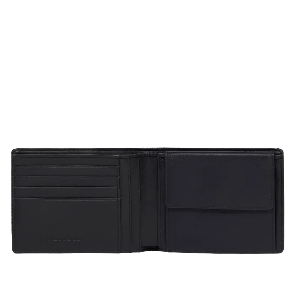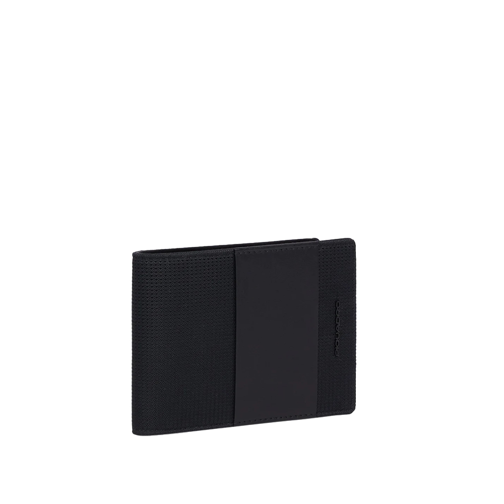 Portafogli uomo in tessuto riciclato e pelle vegana di Piquadro con portamonete, schermato con protezione RFID.