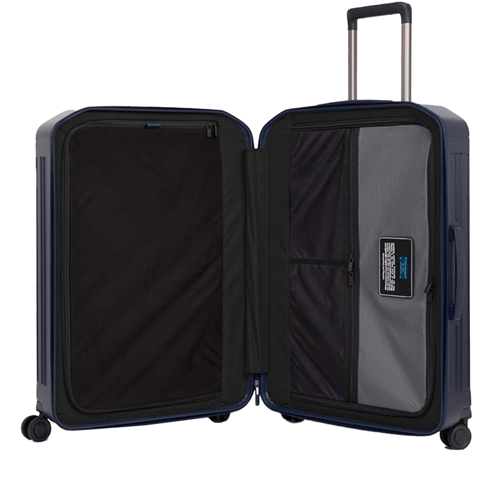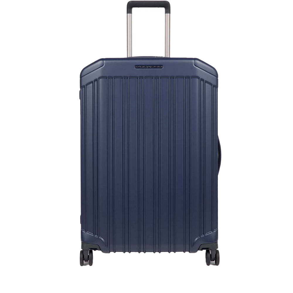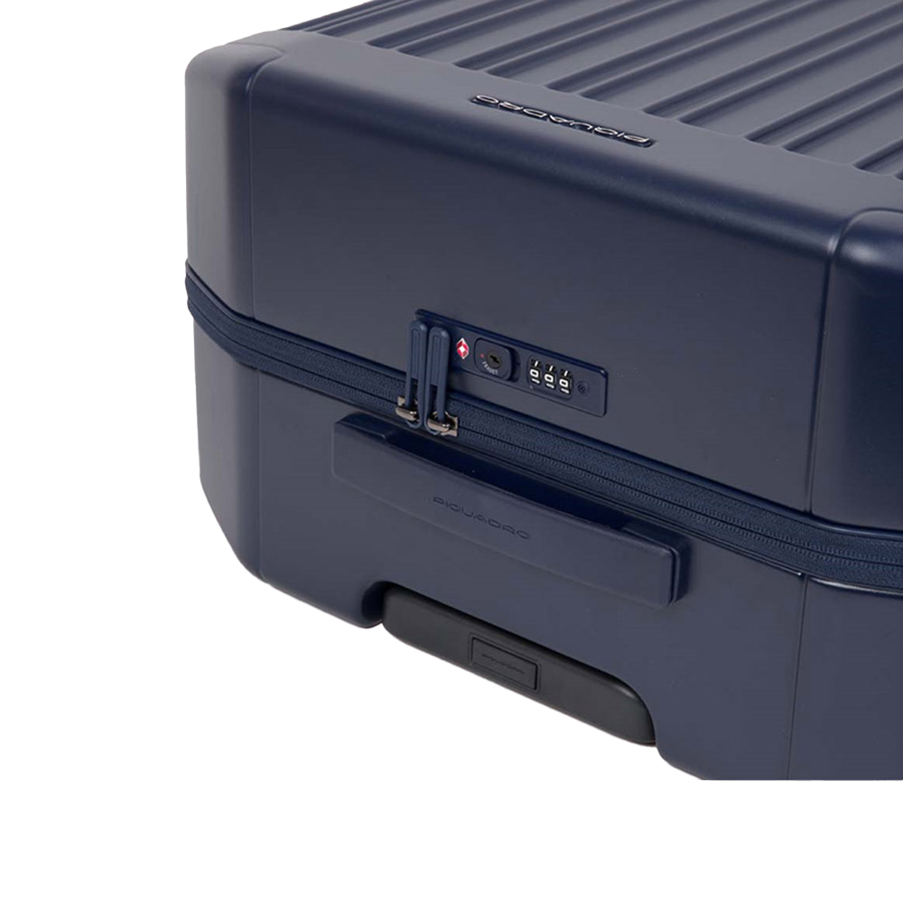 Il trolley medio di Piquadro rigido a quattro ruote con lucchetto TSA. Comodo per i tuoi viaggi.