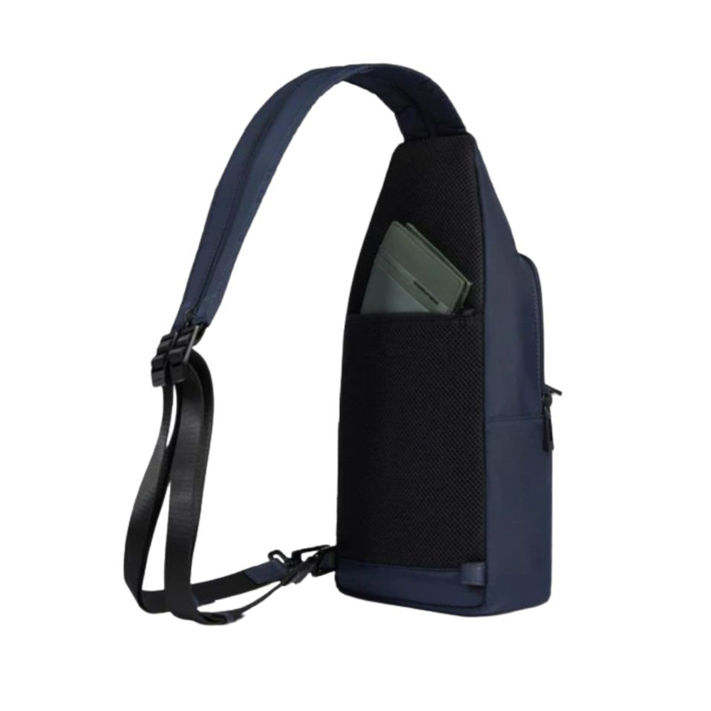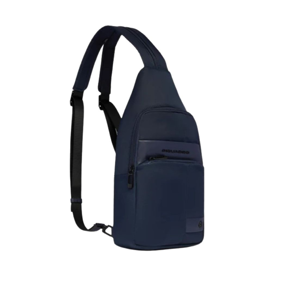 Wollem monospalla di Piquadro in tessuto e pelle porta iPadmini, schermato con protezione RFID e portabile a zaino.