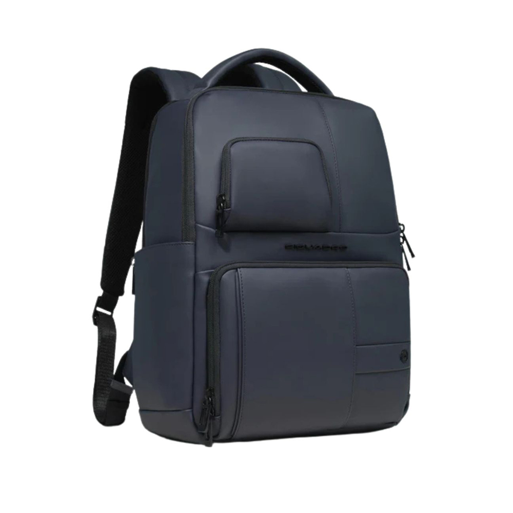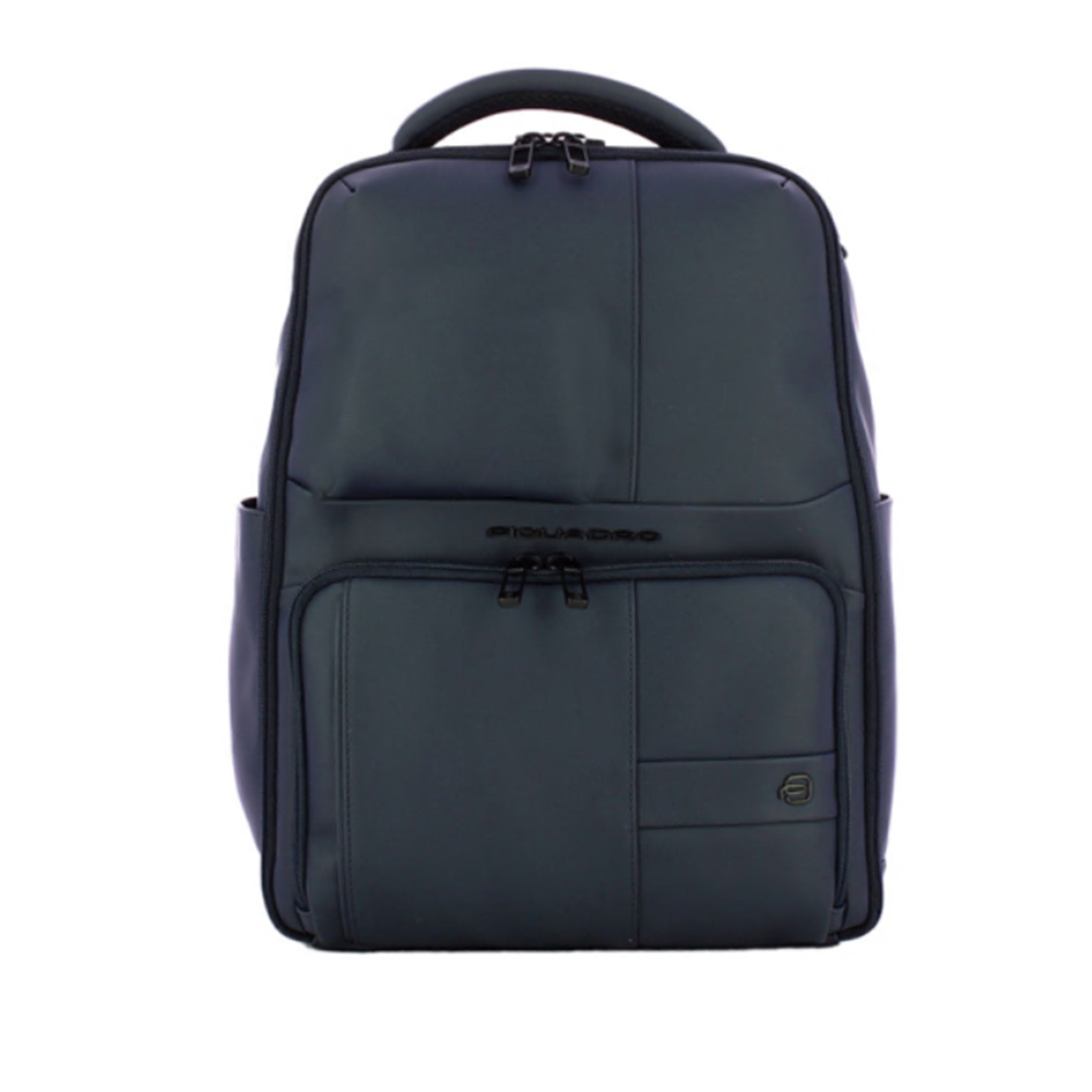 Zaino uomo porta pc e porta iPad di Piquadro in tessuto gommato resistente all'acqua con tasca per AirPods, protezioni antiurto e RFID.