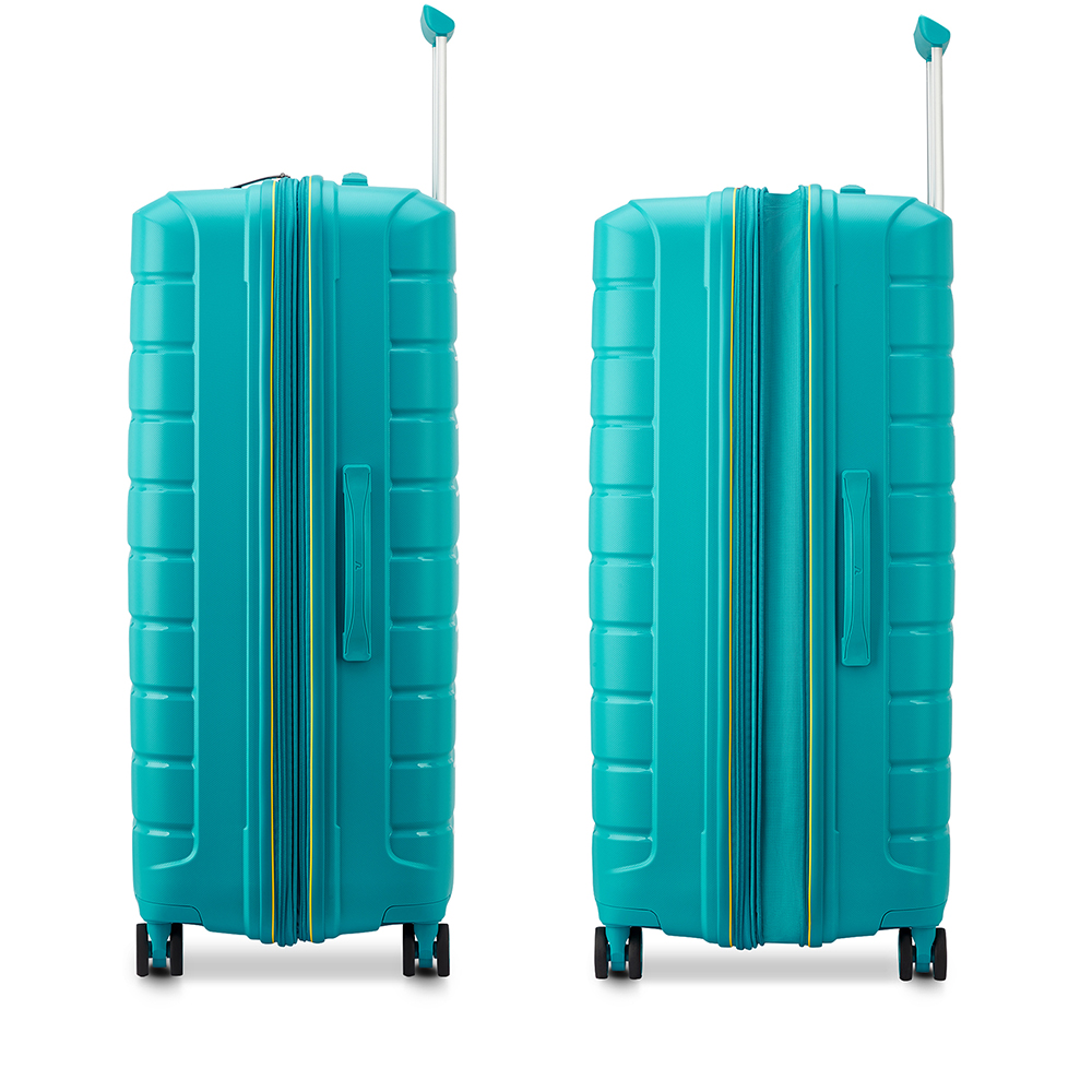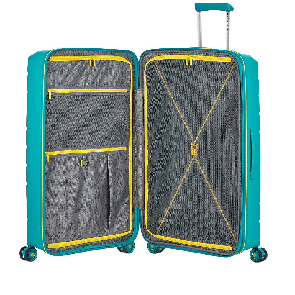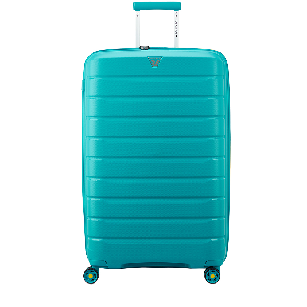 Il trolley grande B-Flying di Roncato ha un sistema espandibile per aumentare la capacità del bagaglio.