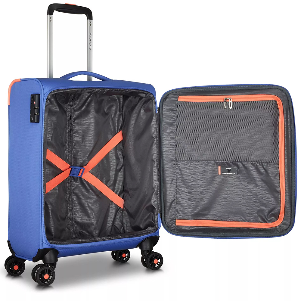 Il trolley cabina Lite Soft di Roncato è stato interamente progettato in Italia ed è adatto a soddisfare le esigenze dei viaggiatori. L'organizzazione interna permette di organizzare al meglio ogni cosa grazie a elastici per bloccare i vestiti, divisori e comparti dedicati. Designn giovane e dinamico con dettagli accattivanti come la cerniera spalmata e la grafica geometrica a contrasto.