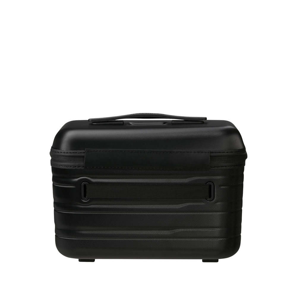 Flashline beauty case rigido, fornito di pratico divisorio interno, tracolla amovibile e smart sleeve posteriore per l'aggancio al trolley, conferendo comfort e praticità.