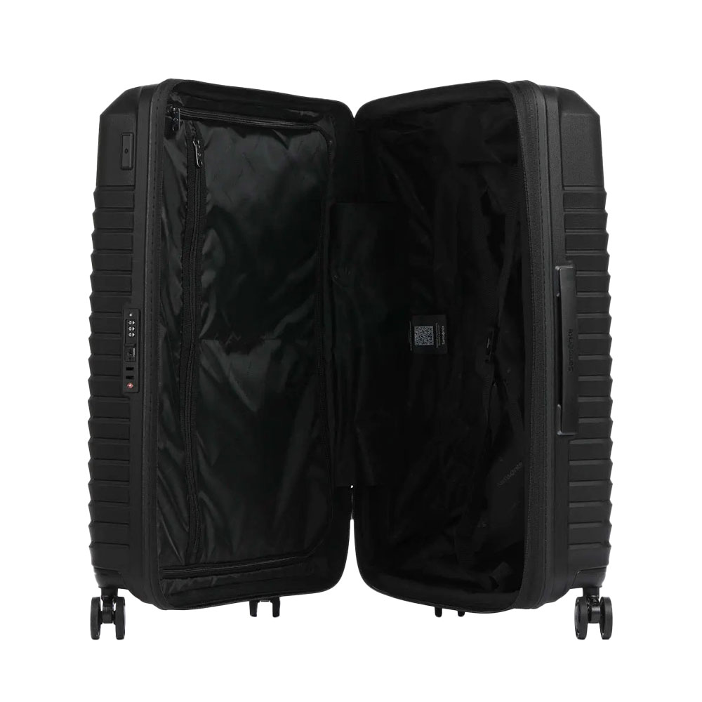 Il trolley Intuo Spinner di Samsonite è caratterizzato da un design elegante e aerodinamico. La forma squadrata offre la massima capienza, che può essere ulteriormente aumentata grazie alla funzione di espandibilità delle dimensioni check-in. Preparati a viaggiare con stile.