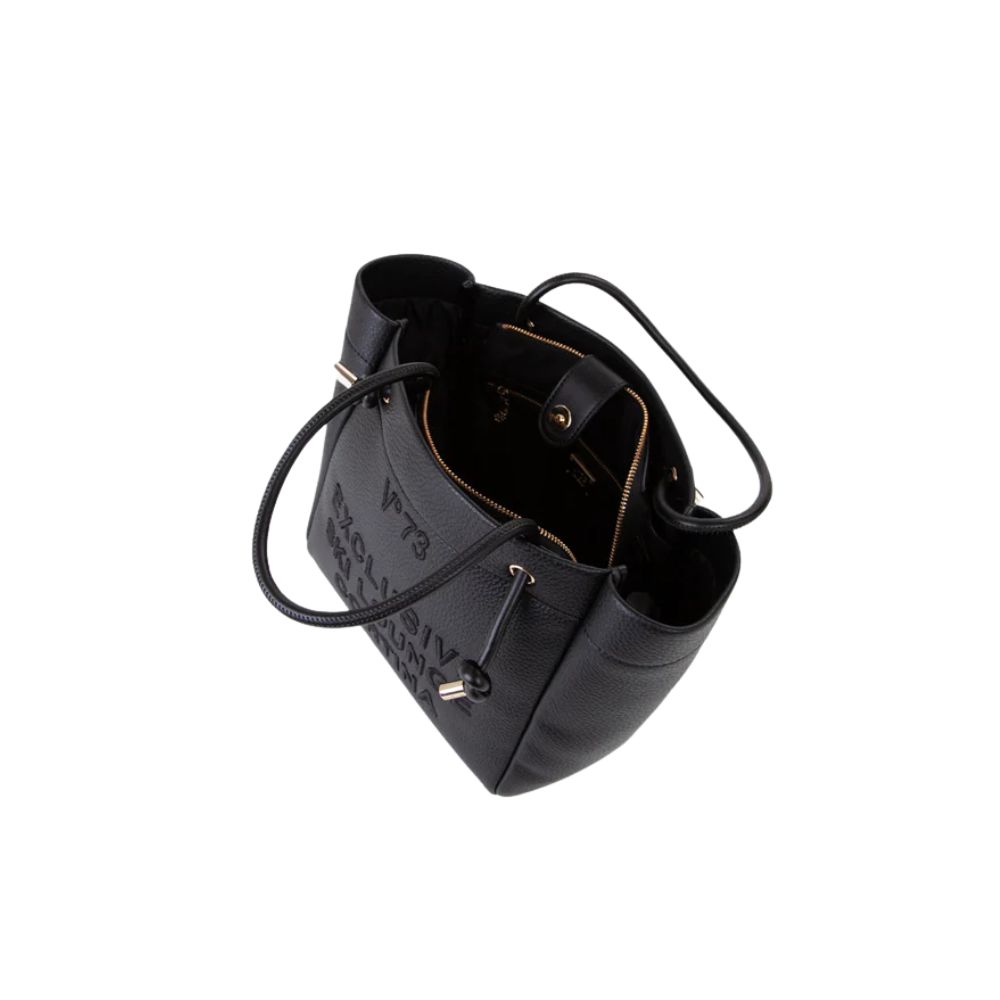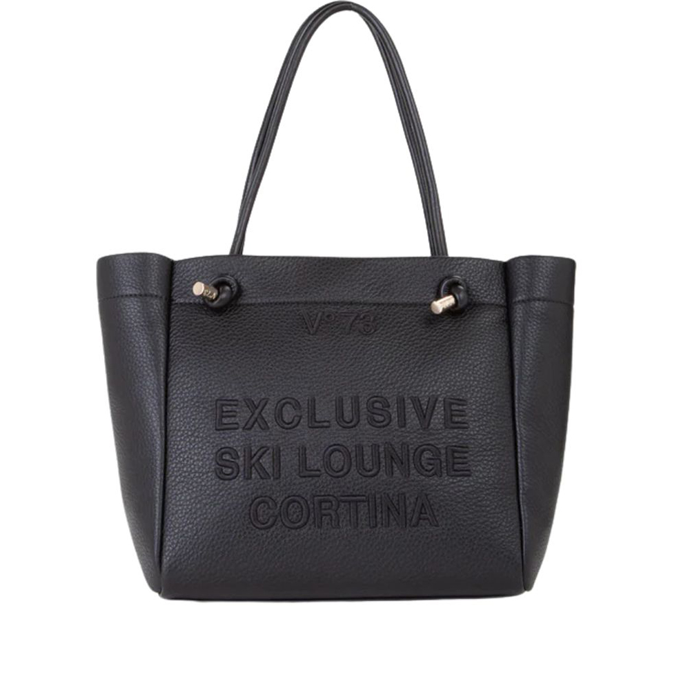 La borsa a mano Cortina di V73 è realizzata in grana con manici tubolari, personalizzata con ricamo in rilievo.